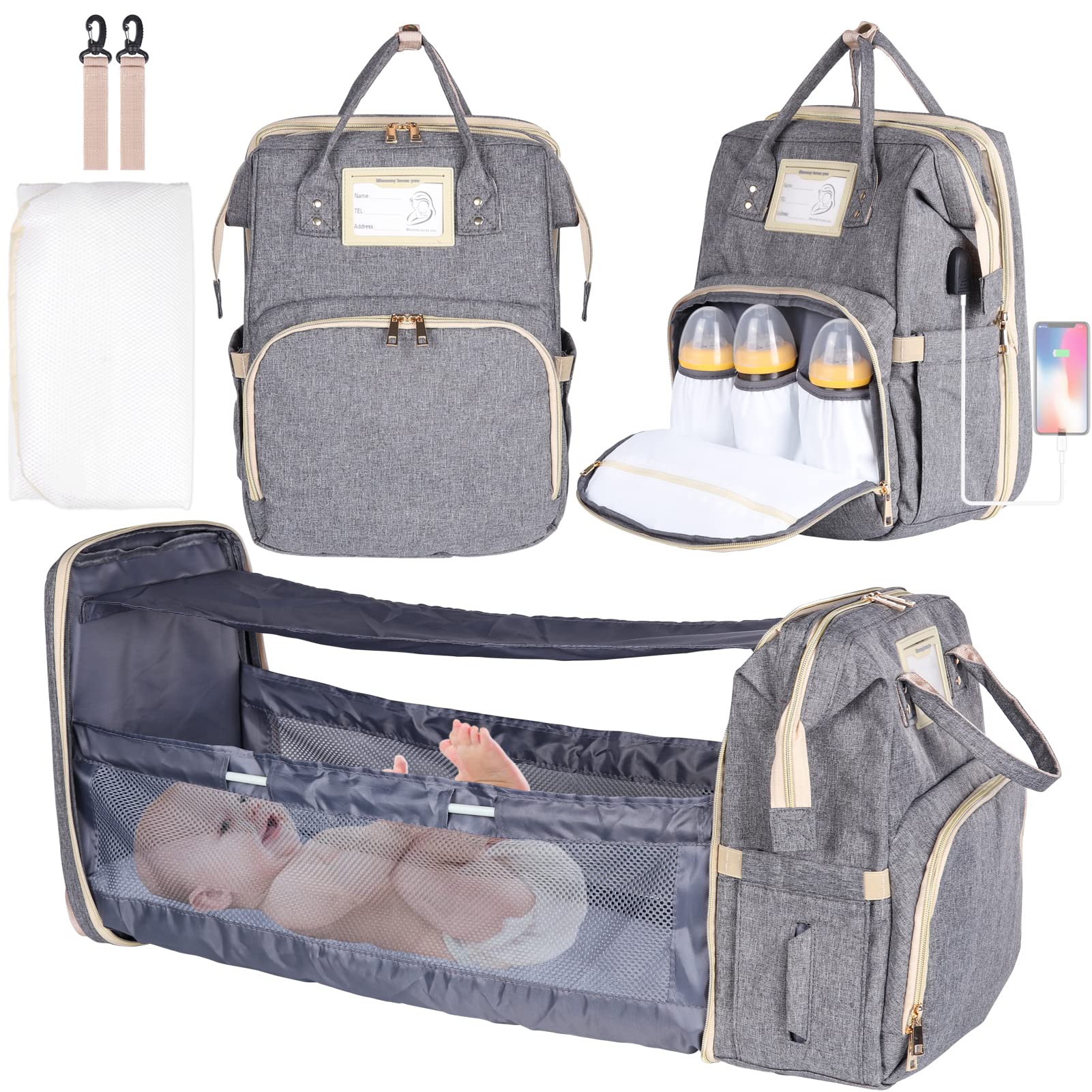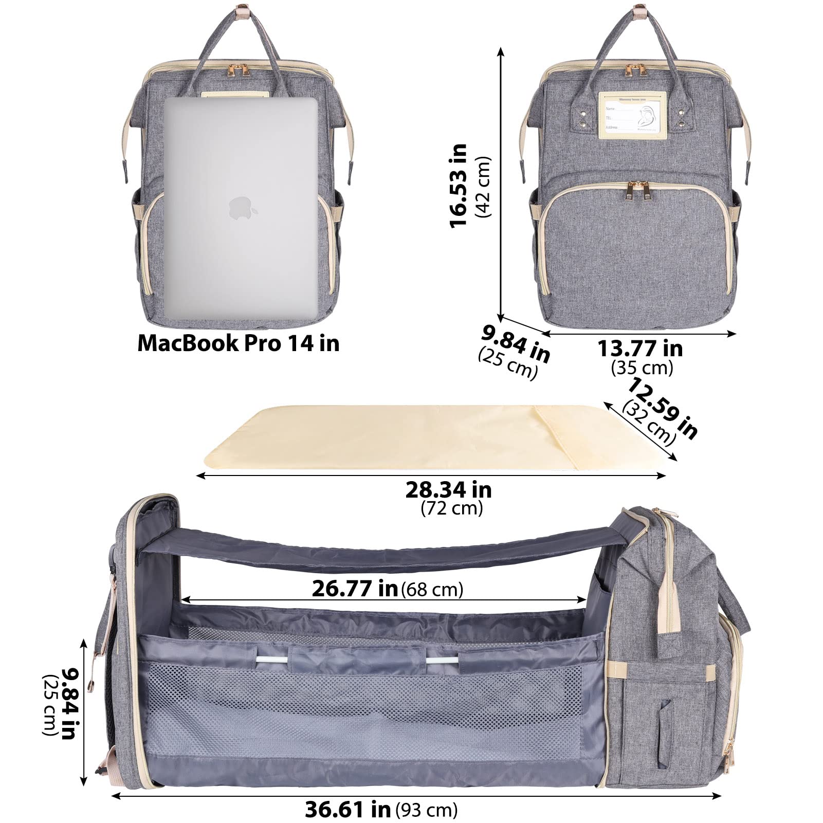 - 【Culla portatile super maneggevole】 L'estensione tascabile è facile da montare e smontare. Fornisce un posto pulito e sicuro per avvolgere il tuo bambino in questa borsa per pannolini quando sei in giro, o sdraiarti per un pisolino quando non sei a casa. Ideale per i parchi. La dimensione del letto assemblato è 70*23*30 cm.